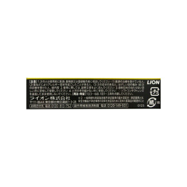 【送料無料のお得な2個セット・3個セットもございます。】 添付文書の内容 商品説明文 年齢・酷使による眼疲労。かすみ※1を治す。 ※1 目やにの多いときなど 繰り返す疲れ目をもとから治す! 涙をとどめ,角膜を修復する 視覚機能回復をサポートする吸着性ビタミンA配合 涙が減少し,角膜が傷つくと,視覚機能が低下。目が疲れやすくなる。 眼疲労や炎症などの「つらい」を治す成分配合 代謝促進:ビタミンE,ビタミンB6,タウリン,L-アスパラギン酸カリウム ピント調節:ネオスチグミンメチル硫酸塩 角膜保護:コンドロイチン硫酸エステルナトリウム 炎症鎮静:イプシロン-アミノカプロン酸 かゆみ抑制:クロルフェニラミンマレイン酸塩 充血除去:塩酸テトラヒドロゾリン 製法特許第5084967号 ビタミンA配合眼科用薬 防腐剤無添加 スマイルの独自技術により防腐効果を持たせています。 防腐剤(ベンザルコニウム塩化物など)を配合していません。 使用期限や保管方法も防腐剤配合の目薬と同様にお使いいただけます。 効能・効果 目の疲れ,目のかすみ(目やにの多いときなど),眼病予防(水泳のあと,ほこりや汗が目に入ったときなど),結膜充血,目のかゆみ,眼瞼炎(まぶたのただれ),紫外線その他の光線による眼炎(雪目など),ハードコンタクトレンズを装着しているときの不快感 用法・用量 1日3-6回,1回1-3滴を点眼してください。 用法関連注意 (1)過度に使用すると,異常なまぶしさを感じたり,かえって充血を招くことがあります。 (2)小児に使用させる場合には,保護者の指導監督のもとに使用させてください。 (3)容器の先を目やまぶた,まつ毛に触れさせないでください(汚染や異物混入(目やにやほこり等)の原因になります。)。また,混濁したものは使用しないでください。 (4)ソフトコンタクトレンズを装着したまま使用しないでください。 (5)点眼用にのみ使用してください。 有効成分・分量 100ml中 成分 分量 レチノールパルミチン酸エステル 50000単位 酢酸d-α-トコフェロール 0.045g ピリドキシン塩酸塩 0.01g コンドロイチン硫酸エステルナトリウム 0.1g アミノエチルスルホン酸(タウリン) 1g L-アスパラギン酸カリウム 0.8g ネオスチグミンメチル硫酸塩 0.005g クロルフェニラミンマレイン酸塩 0.03g 塩酸テトラヒドロゾリン 0.01g イプシロン-アミノカプロン酸 1g 添加物 ホウ酸,トロメタモール,エデト酸ナトリウム,ジブチルヒドロキシトルエン(BHT),ポリオキシエチレン硬化ヒマシ油,ポリソルベート80,プロピレングリコール,l-メントール,d-ボルネオール,pH調節剤 使用上の注意 ■相談すること 1.次の人は使用前に医師,薬剤師又は登録販売者に相談してください (1)医師の治療を受けている人。 (2)薬などによりアレルギー症状を起こしたことがある人。 (3)次の症状のある人。はげしい目の痛み (4)次の診断を受けた人。緑内障 2.使用後,次の症状があらわれた場合は副作用の可能性があるので,直ちに使用を中止し,この文書を持って医師,薬剤師又は登録販売者に相談してください [関係部位:症状] 皮膚:発疹・発赤,かゆみ 目:充血,かゆみ,はれ,しみて痛い 3.次の場合は使用を中止し,この文書を持って医師,薬剤師又は登録販売者に相談してください (1)目のかすみが改善されない場合。 (2)5-6日間使用しても症状がよくならない場合。 保管及び取り扱い上の注意 (1)直射日光の当たらない涼しい所に密栓して保管してください。 品質を保持するため,自動車内や暖房器具の近くなど高温の場所(40℃以上)に放置しないでください。 (2)小児の手の届かない所に保管してください。 (3)他の容器に入れ替えないでください(誤用の原因になったり品質が変わります。)。 (4)他の人と共用しないでください。 (5)使用期限(外箱の底面に書いてあります)の過ぎた製品は使用しないでください。なお,使用期限内であっても一度開封した後は,なるべく早くご使用ください。 (6)容器を横にして点眼したり,保存の状態によっては,容器の先やキャップ部分に成分の結晶が付着することがあります。 その場合には清潔なガーゼで軽くふき取ってご使用ください。 (7)品質保持のため脱酸素剤が入っています。 透明フィルム開封後は脱酸素剤を捨ててください。 ◇自然環境に配慮し,携帯袋は入れておりません。 製造販売元 ライオン株式会社 東京都台東区蔵前1-3-28 電話:0120-813-752 受付時間:9:00から17:00(土,日,祝日を除く) リスク区分等 リスク区分等 第2類医薬品 医薬品の使用期限 使用期限 使用期限まで180日以上あるものをお送りします。 【広告文責】 株式会社リノ 025-755-5594 薬剤師 鎌田直毅 医薬品販売に関する記載事項(必須記載事項)はこちら 【お客様に確認事項がある場合は以下の電話番号又はメールアドレスよりご連絡いたします。】 四日町薬局 電話:025-755-5594 メール:yokkamachi@shop.rakuten.co.jp 関連:すまいる / 40 / 40 / プレミアム / ぷれみあむ / でらっくす / 目薬 / 市販薬 / 目の疲れ / かすみ / 目やに / 眼病予防 / 水泳 / ほこり / 汗 / 目に入った / 結膜 / 充血 / かゆみ / 眼瞼炎 / まぶた / ただれ / 