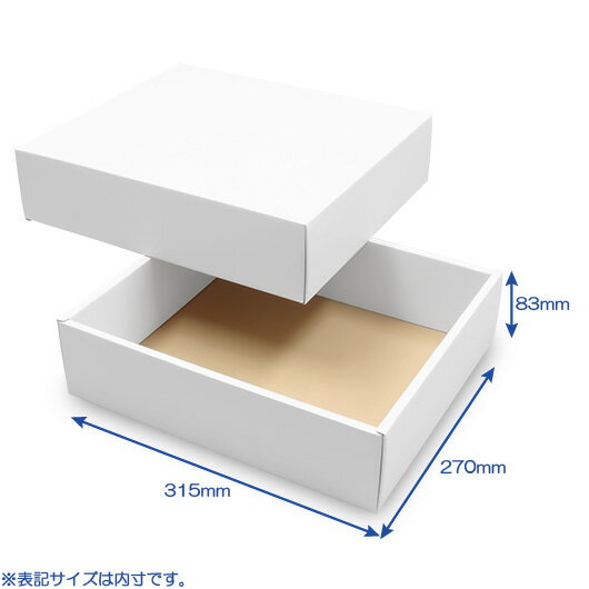 ◇内寸(横×奥行×高さ):315×270×83mm ◇色:白・クラフト・黒 ギフト箱 詰め合わせ箱 段ボール 梱包用 梱包資材 梱包 店舗用品 かぶせ かぶせ箱 ふた付き 白 ホワイト 茶 クラフト 黒 ブラック組立箱(C式)は、お弁当箱のようにふたと本体が別々になるタイプの箱です。ふたと本体それぞれの側面に縁があるので、形が崩れにくく高級感があり、果物やお菓子などの贈答箱として人気の高い箱です。 ダンボール 組立箱(No.13) 段ボール 組立箱は、身とフタのセットでご購入いただける箱です。 箱の内側はクラフト色です。 納入時は平らな状態です。お客様のほうで必要な分だけ簡単に組み立ててご使用いただけます。 段ボール 組立箱は、身とフタのセットでご購入いただける箱です。 箱の内側はクラフト色です。 納入時は平らな状態です。お客様のほうで必要な分だけ簡単に組み立ててご使用いただけます。 段ボール 組立箱は、身とフタのセットでご購入いただける箱です。 組立箱は、贈答箱として人気があります。 箱の内側はクラフト色です。 納入時は平らな状態です。お客様のほうで必要な分だけ簡単に組み立ててご使用いただけます。 高級感のあるギフトボックスとして最適です。