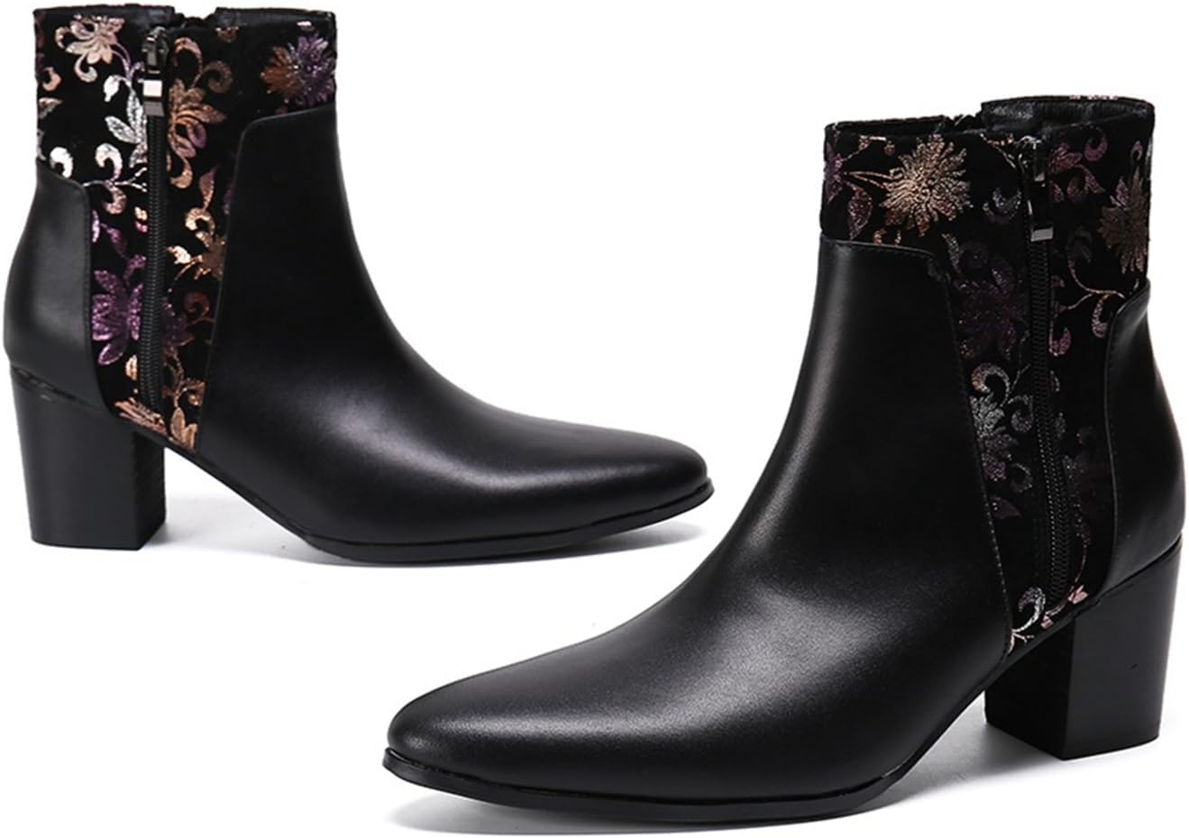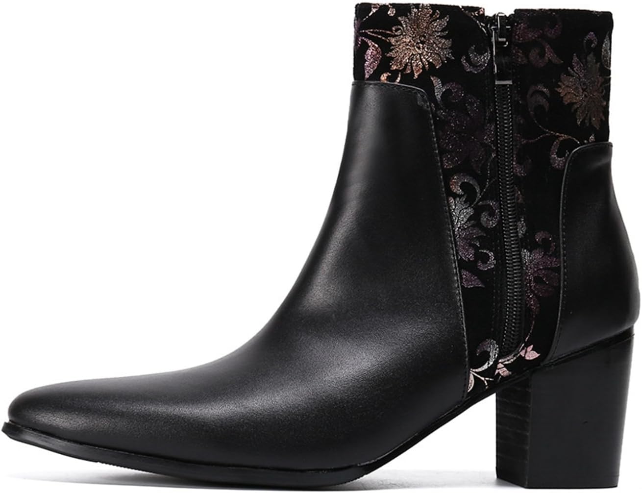 秋冬靴 ジップアップ ブーツ メンズ 刺繍 ポインテッドトゥ ダブルジップ チェルシーブーツ 本革 太めヒール ショートブーツ イングランド風 春秋冬 透気 撥水加工 ドレスシューズ 職場