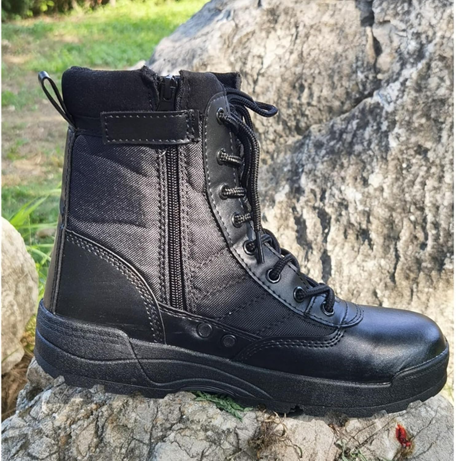 ◆◇◆売れている秘密◆◇◆ 【耐磨耗/衝撃吸収】ソールは、滑り止めゴム素材を採用した深溝パターンのハイグリップアウトソールで、クッションを保ちながら、強い摩擦抵抗があり、滑りにくくて耐磨耗性が良い。足のまだインソールが足をより快適に感じさせ、優れたクッション効果をもたらすようにしました。 【高い通気性と快適なフィット感】ライディングシューズは、通気性が高く、足を快適に保ちます。さらに、しっかりとしたフィット感があり、長時間の使用でも疲れにくいです。 【サイドジップ】サイドジッパーが付いていて、脱履きが容易です。端部はマジックテープで留める方式で、緩みの調整に便利。 【アウトドア用】良質なメッシュを採用し、歩くとき蒸れ感を軽減。日常での使用はもちろん、トレッキングや登山やサバゲーやライトハイキングなど様々なアウトドアシーンで活躍します。 【耐摩耗性防水性】靴の表面は高品質の素材で、防水?透湿効果を発揮し、年間を通して快適な履き心地を実現します。雨など水の侵入を防ぐことができます! ◆◇◆注意事項◆◇◆ご覧のモニターの環境、撮影環境により実物と色味が異なって見える場合がございます。湿った状態で他のものと擦り合わせると色が移る恐れがあります。濃色品の洗濯時は、白色、淡色と分けて洗ってください。説明 ________★★★★★________ 【商品詳細】 素材: レザー、ポリエステル 【商品紹介】 ◆幅広でゆったりめのラウンドトゥが、十分な足空間を与える。甲が高い方や幅広い方でも楽々に手入れできます。 見た目も良く、グリップができるようにデザインし、柔らかくて耐久性もよく、 とても快適な履き心地を実現させました。 ◆シンプルなデザインに履き口のパットなど重厚感もあり季節を問わず1年中履ける機能性を重視したワークブーツ! 旅行やショッピングなどたくさん歩きたい日にもおすすめです。ドライビング時にもオススメです。 ◆アーチサポート付きのインソールが足裏の疲れを軽減し、肉厚なハイカット仕様が足首をサポートしてくれます。 ゴムの底部は滑り止めがよく、雨の日でも履くことができます。 ◆彼氏、お父さん、お友達への贈り物としてきっと喜ばれるでしょう。 誕生日、クリスマス、記念日にあなたの家族、友人や恋人のための素晴らしい贈り物にもなります。 柔らかな肌触りで履き心地が良く、絶対に違和感がありません。 ◆いろいろなシーンに使いやすいように無駄な装飾を省き、スタイリッシュなルックスに! ハードユースとしてサバイバルゲーム にバッチリ!アメカジ系 や アウトドア系スタイル にもおすすめ! ワイルドなイメージが強いこともあって、清潔感がある着こなしと縁遠いと思われがちなミリタリースタイル。 【ご注意】 ★洗濯:靴の変形や破損を防ぐため、本制品は手洗いが望ましい。 ★ご注意:レインブーツでない限り、完全防水ではありませんので、できるだけ長時間水に浸かってはいけません。 ご来店ありがとうございます 本店の営業時間:平日&土曜日10:00〜19:00 【24時間注文受付】 当商品に関する問題はどうぞ弊店のメアドまでにお気軽にお問い合わせください。 ☆本店は他のブーツ/シューズなど種類の豊富のぬいぐるみがあります! 検索キーワード: ミリタリーブーツ メンズシューズ 本革 レディース ブーツ ワーク ブーツ 大きいサイズ サイドファスナー 履きやすい swat風 米軍レプリカ ストリート 革靴 超軽量 厚底 ウォーキング レディース 通勤 耐久性 手作り 長持ち ハイカット 黒 ジャングル かっこいい クッション性 高校生 シンプル バイクブーツ レーシングブーツ ツーリングシューズ ライディングブーツ ライダース コンバットブーツ タクティカルブーツ メンズ 撥水 軍靴 ミドルカット