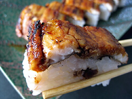 商品詳細 商品名 特上焼き穴子箱寿司(特上焼きアナゴ箱寿司) 原材料 明石産 あなご、椎茸、米、生姜、昆布、レモン、調味料(酢、砂糖、酒、塩、味醂、醤油、水あめ、ハチミツ、ダシ汁) 賞味期限 製造日(発送日)より3日間 ※商品到着に2日以上かかる地域への発送は出来ません。商品到着後は出来るだけお早めにお召しあがり下さい。 内容量 特上焼きあなご箱寿司 1本8カン(8切れ) お召し上がり方 冷蔵状態ですと酢飯が硬くなっていますので、60分〜90分かけて常温に戻して頂くか、電子レンジで10〜20秒ほど少し温めてからお召しあがり下さい。冷え過ぎたシャリは元に戻らない場合がありますので、冷やし過ぎにご注意して下さい。 ご注意 冷え過ぎるとシャリがパサパサになってしまいますので、涼しい場所で保管して下さい。冷蔵庫なら、野菜室など冷え過ぎない場所に保管して下さい。 お届け・送料等 送料 料金表⇒こちら お届け方法 冷蔵便(ヤマト運輸) 配達日・時間指定 発送日は4日後以降からのご指定でお願いします。※当店からのメールで到着日をご確認下さい。時間指定については、地域によりご指定時間に配達出来ない場合があります。(注文後メールにてお知らせいたします)ページ下部の発送目安表をご覧下さい。-特上焼穴子箱寿司- うっ、うなぎ? あなごです! 裏側まで~!! 一匹丸々使用でご覧の通り♪ 当店の箱寿司/押し寿司は、私達親子で作っています。 親父はこの道一筋60余年で、楽天業務では主に仕入れ、魚の捌きなどを担当しております。 私(店長)は寿司を作り、梱包、発送業務などを担当しております。受注管理、ページ作り等、全て私が担当しておりますので、何かご不明な点が御座いましたらお気軽にお問い合わせ下さいね。 ※お問い合わせなどには、発送業務等が全て終了してからの返信になりますので、ご了承下さい。 日本標準時の子午線で有名な明石の街から、毎日正確な時刻に発送しております。工場での大量生産では出来ない、私達親子の一本一本手作りにこだわった、真心込めたお寿司をお送り致します。 発送日当日が製造日ですので、安心してお召し上がりください。賞味期限は発送日より3日間ですが、到着日に食べて頂くのが最良です。 明石ブランドの焼き穴子へのこだわり 備長炭で焼き上げた芳ばしさが楽しめ、穴子の旨味と香りが特徴的な箱寿司です。 特上の穴子箱寿司には穴子を丸ごと1匹使い、シャリには甘く煮詰めた椎茸がいいアクセントになっています。特上焼き穴子の為に、大サイズを選びました。脂のノリも程良く、骨はやわらかく処理『秘』をしています。生の状態ではポッテリした身の肉厚です。焼き上がると何とも言えぬ身のやわらかさ。明石には、大きいサイズの特別仕様があります!まさに!厳選素材です!!明石特有の穴子を是非とも堪能して頂きたく思います。 特上焼き穴子箱寿司/特上焼アナゴ寿司 関西は、兵庫県明石市より出店!日本のど真ん中!明石市より美味しお寿司をお送り致します。 明石の特大焼き穴子を丸ごと一匹使用。明石では、でん助と言います。大きな焼き穴子をめいいっぱい使い満足のいく一本です。明石産アナゴを使っています。程良い脂加減でいくらでも召し上がれます。更にシャリとシャリの間には、甘く炊き詰めたどんこ椎茸を挟み良いアクセントになってます。頭から尻尾まで使い、ぐるりと巻き込んでいます。食べ応え十分ですよ。 発送(梱包)状態も、竹の皮に包み、そのままでも贈答用・贈り物・ギフトにも最適♪大切なお方にも是非、お送り下さい。