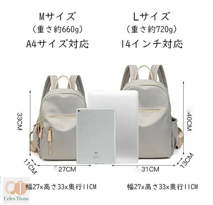 リュック レディース 軽量 撥水 大容量 リュックサック大人 ナイロン 女性 女の子 PCリュック 通勤リュック ビジネスリュック 大人 きれいめ リュックサック レディース リュック 軽い A4 14インチ iPad バックバッグ 上品 通勤/旅行/通学/出張