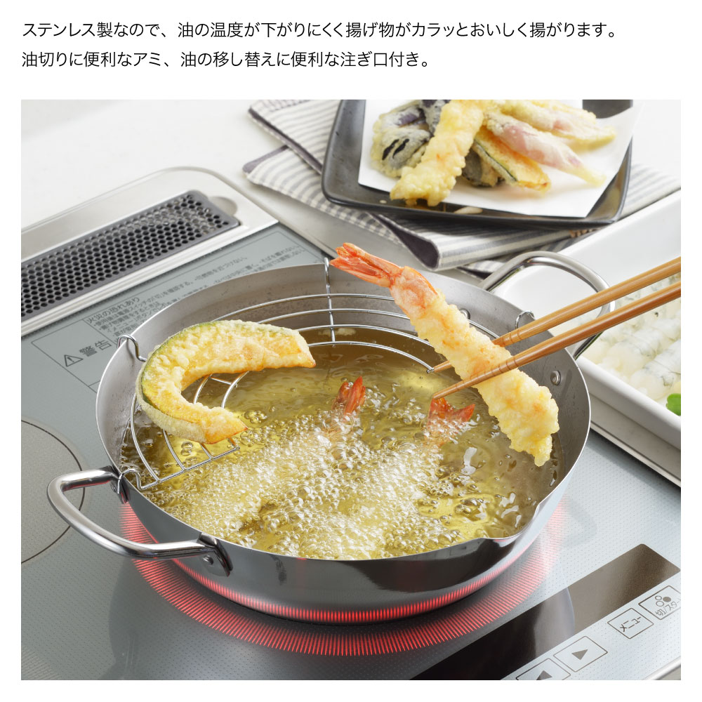 【ラッピングOK】◇郷技 ステンレス製天ぷら鍋24cm【YJ2555】◇【3808907】【ヨシカワ 直営 yoshikawa 燕三条産】【日本製 ステンレス製 揚げアミ付き】