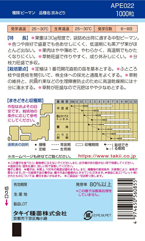 京みどりピーマン種 1000粒 ピーマン種子 【ピーマン種】【タキイのタネ】【野菜の種】