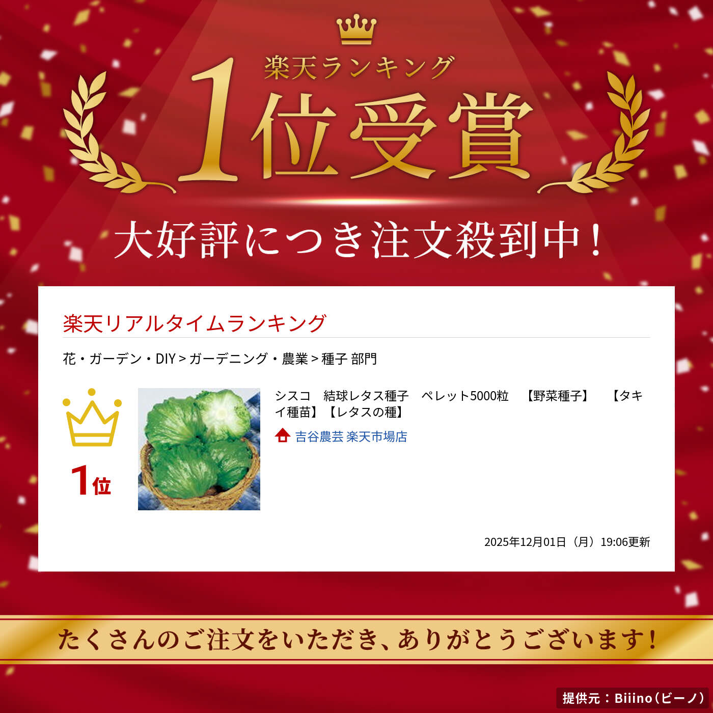 注)こちらの商品は野菜の種子です。 注)流動在庫につき、メーカー在庫キレ等によりご注文を キャンセルまた多少お時間頂く場合がございますので誠に恐れ入りますが、あらかじめご了承頂きますようよろしくお願い致します。 注)まき時期をご確認の上、ご注文をお願い致します。 シスコ 結球レタス種子 ペレット5000粒 春、冬どりレタス ☆特長☆ 低温結球性に優れた高品質の中生種。玉は豊円球で変形しにくく、鮮緑色で内部までよく着色する。肉質は厚くて日もちに優れ、歯切れがよい。 熟期:中生 ※ペレット種子はタネまき後にたっぷりと散水すると発芽が良好となります。