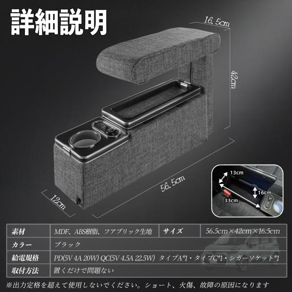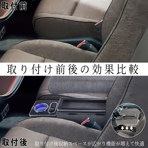 商品説明 トヨタ シエンタ 10系 / 170系 専用コンソールボックス。 専用設計でフィット感抜群、収納・充電・快適性を一体化した多機能モデル。 適合情報 【適合車種】 トヨタ シエンタ 10系 / 170系 【型式】 NSP170 / NCP170 / NHP170 / MXPC10G / MXPL10G / MXPL15G 【グレード】 170系:X / G / G Cuero / FUNBASE X / G / HYBRID X / G 10系:X / G / Z(ガソリン / ハイブリッド) 簡単取付 シエンタ専用設計でセンターにぴったりフィット。 工具不要で置くだけ簡単取付。 アームレストは15段階調整可能で、姿勢や体格に合わせて快適に使用可能。 LEDライト&充電機能 暗い車内でも見やすいLEDライト搭載。 USB(Type-A / Type-C)ポートとシガーソケット付きで、夜間の充電や機器接続もスムーズ。 大容量収納で車内スッキリ スマホ・ティッシュ・小物類をまとめて収納可能。 前部にドリンクホルダー、後部に収納ボックスを備え、整理整頓が簡単。 注意事項 ※運転席側にアームレストがない車両では、装着後に隙間ができる場合があります。 ※本商品は固定式のため、隙間を完全に埋めることはできません。 ※定格出力(PD:20W/QC:22.5W/ソケット:120W)を超えないでください。 ※ヒューズは5Aを使用。 ※画像はイメージです。実物と色が異なる場合があります。 ※仕様は入荷時期により変更される場合があります。