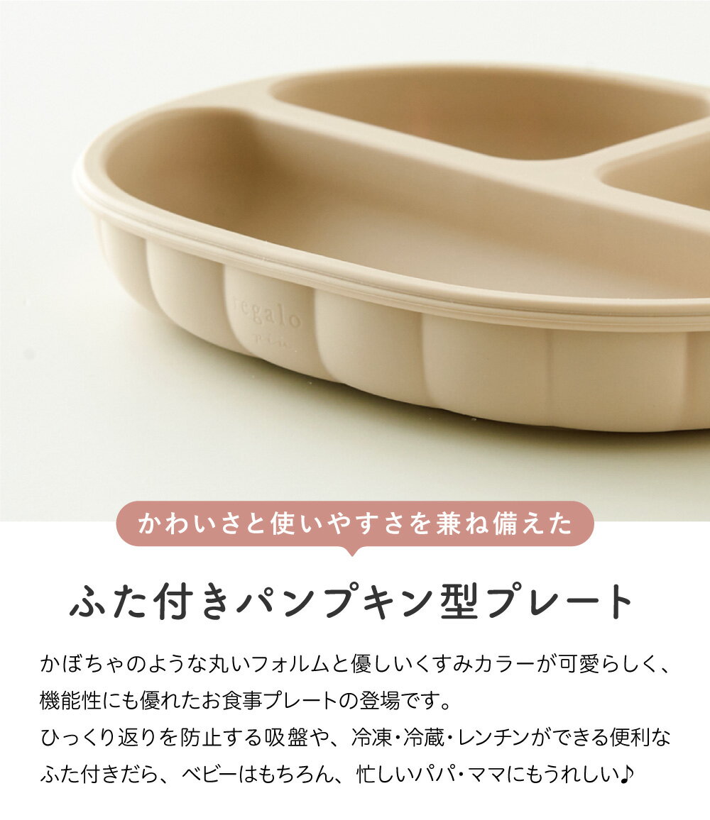 ベビー食器 お皿 パンプキン シリコン ひっくり返らない くっつく すくいやすい 食洗機対応 離乳食 食品衛生検査合格 吸盤付き ふた付き レンチン お食事 おしゃれ プレゼント 出産祝い パンプキン型プレート regalo piu rv000