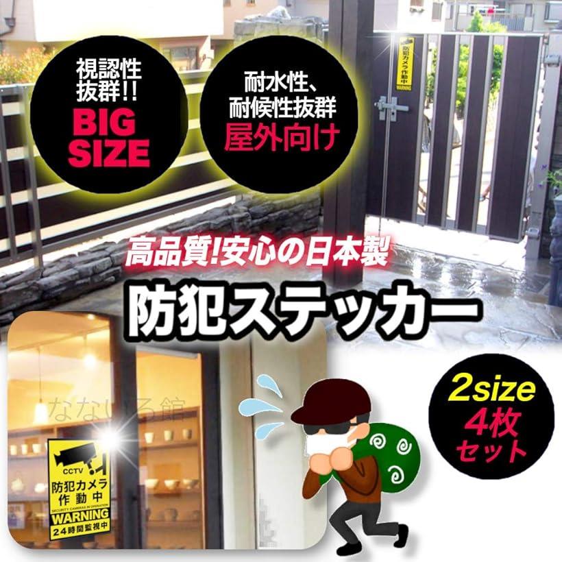 商品コード2b6yo2yrtq商品名屋外用 大判 防犯ステッカー 4枚セット 日本製 A4サイズ セキュリティステッカー 防水素材 防犯カメラ作動中 国産ブランドなないろ館カラー黄色 黒色・屋外向けに作られた防犯ステッカーです。屋外看板などでも使用される素材で、耐水性、耐候性に優れています。2サイズ各2枚 計4枚のセットです。(屋内でもご使用いただけます) ステッカーなので簡単に設置でき、防犯対策ができます。・A4サイズ・A4半分サイズの2サイズ。黄色と黒のコントラストカラーで視認性抜群。遠くからでも目立ちます。ドア、入口、窓、壁、ポール、角柱などの目につく場所におすすめです。・防犯ステッカーを設置することで、盗難等を未然に防ぐことが期待できます。監視カメラと一緒に設置すればさらに防犯効果があがります。・「サイズ」大:縦27.4 x 18.2cm 小:縦27.3 x 7.8cm 日本製・店舗、事務所、ショッピングモール、駐車場やオフィス、工場、観光地、ホテル、旅館、民泊、町内、ご自宅の玄関、窓、フェンス等の防犯対策にお使いいただけます。インバウンドなど訪日外国人の増加が予想されるため、様々なトラブル防止にご利用いただけます。*設置できる場所ではなるべく監視カメラとの併用もおすすめいたします。※ 他ネットショップでも併売しているため、ご注文後に在庫切れとなる場合があります。予めご了承ください。※ 品薄または希少等の理由により、参考価格よりも高い価格で販売されている場合があります。ご注文の際には必ず販売価格をご確認ください。※ 沖縄県、離島または一部地域の場合、別途送料の負担をお願いする場合があります。予めご了承ください。※ お使いのモニタにより写真の色が実際の商品の色と異なる場合や、イメージに差異が生じることがあります。予めご了承ください。※ 商品の詳細(カラー・数量・サイズ 等)については、ページ内の商品説明をご確認のうえ、ご注文ください。※ モバイル版・スマホ版ページでは、お使いの端末によっては一部の情報が表示されないことがあります。すべての記載情報をご確認するには、PC版ページをご覧ください。「(なないろ館)屋外用大判防犯ステッカー4枚セット日本製A4サイズセキュリティステッカー防水素材防犯カメラ作動中国産」屋外向けに作られた防犯ステッカーです。屋外看板などでも使用される素材で、耐水性、耐候性に優れています。2サイズ各2枚 計4枚のセットです。(屋内でもご使用いただけます)ステッカーなので簡単に設置でき、防犯対策ができます。A4サイズ・A4半分サイズの2サイズ。黄色と黒のコントラストカラーで視認性抜群。遠くからでも目立ちます。ドア、入口、窓、壁、ポール、角柱などの目につく場所におすすめです。防犯ステッカーを設置することで、盗難等を未然に防ぐことが期待できます。監視カメラと一緒に設置すればさらに防犯効果があがります。「サイズ」大:縦27.4x18.2cm 小:縦27.3x7.8cm 日本製店舗、事務所、ショッピングモール、駐車場やオフィス、工場、観光地、ホテル、旅館、民泊、町内、ご自宅の玄関、窓、フェンス等の防犯対策にお使いいただけます。インバウンドなど訪日外国人の増加が予想されるため、様々なトラブル防止にご利用いただけます。*設置できる場所ではなるべく監視カメラとの併用もおすすめいたします。