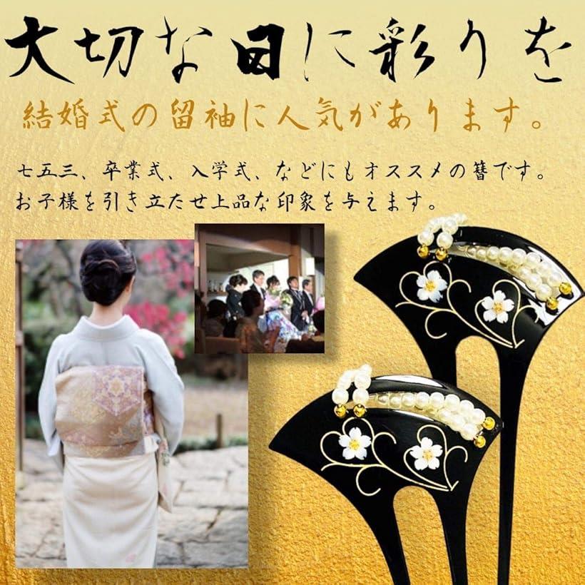 【楽天ランキング1位入賞】かんざし 髪飾り 和装 パール 留袖 バチ型 浴衣 着物 (ブラック, Free Size)