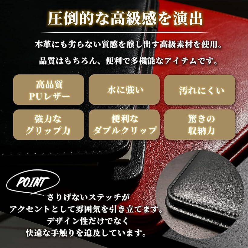 【楽天ランキング1位入賞】バインダー a4 2つ折り たくさん挟める縦横ダブルクリップ クリップボード クリップファイル PUレザー ペンホルダー ブラック (ブラック)