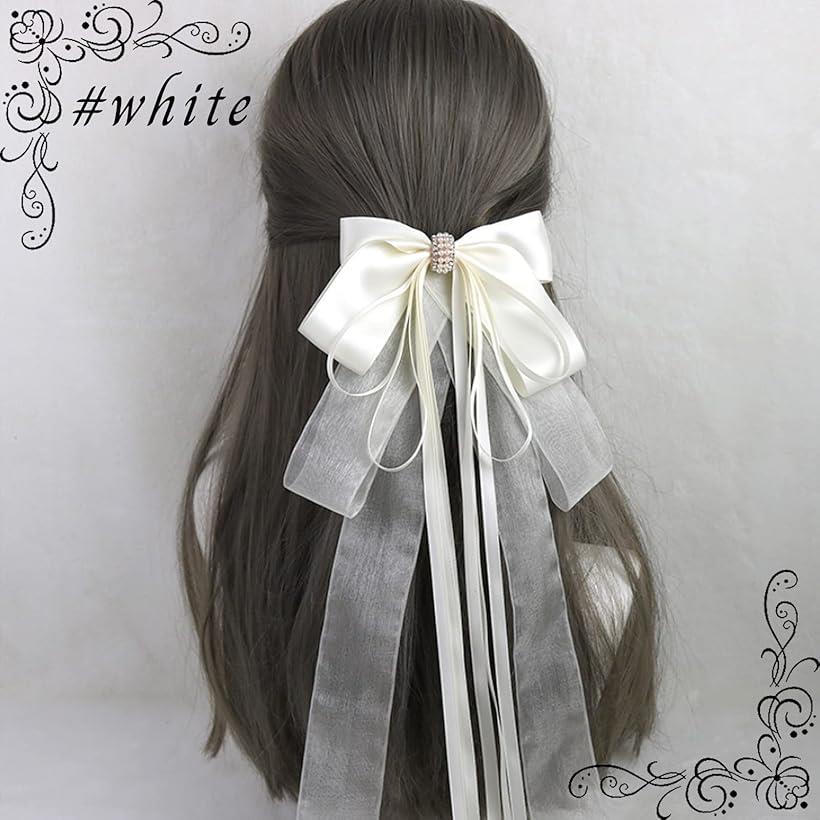 リボン 髪飾り 大きめリボン バレッタ ヘアアクセサリー ゴスロリ ロリータ レース ホワイト (ホワイト)