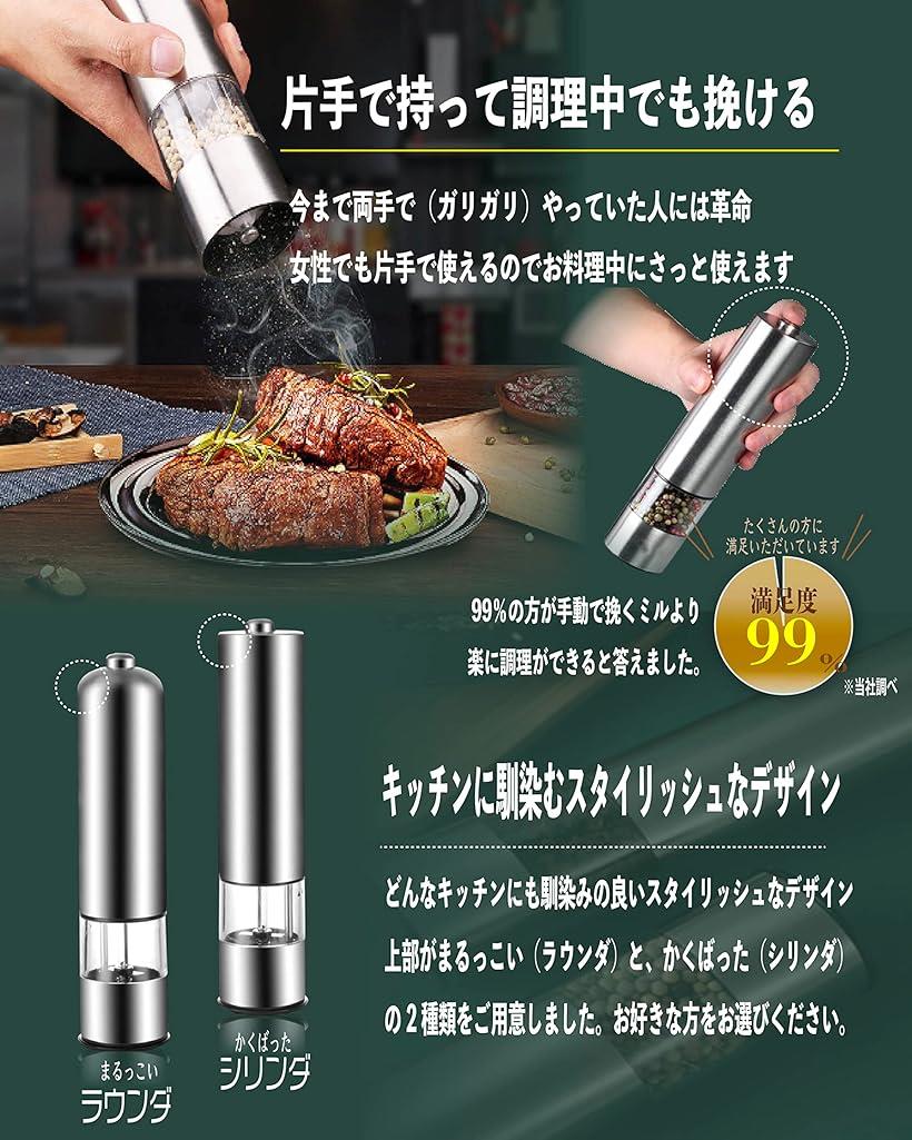 【楽天ランキング1位入賞】ペッパーミル 電動 ソルトミル 電動ミル スパイス 岩塩 黒胡椒 コショウラウンダ (2個セット)
