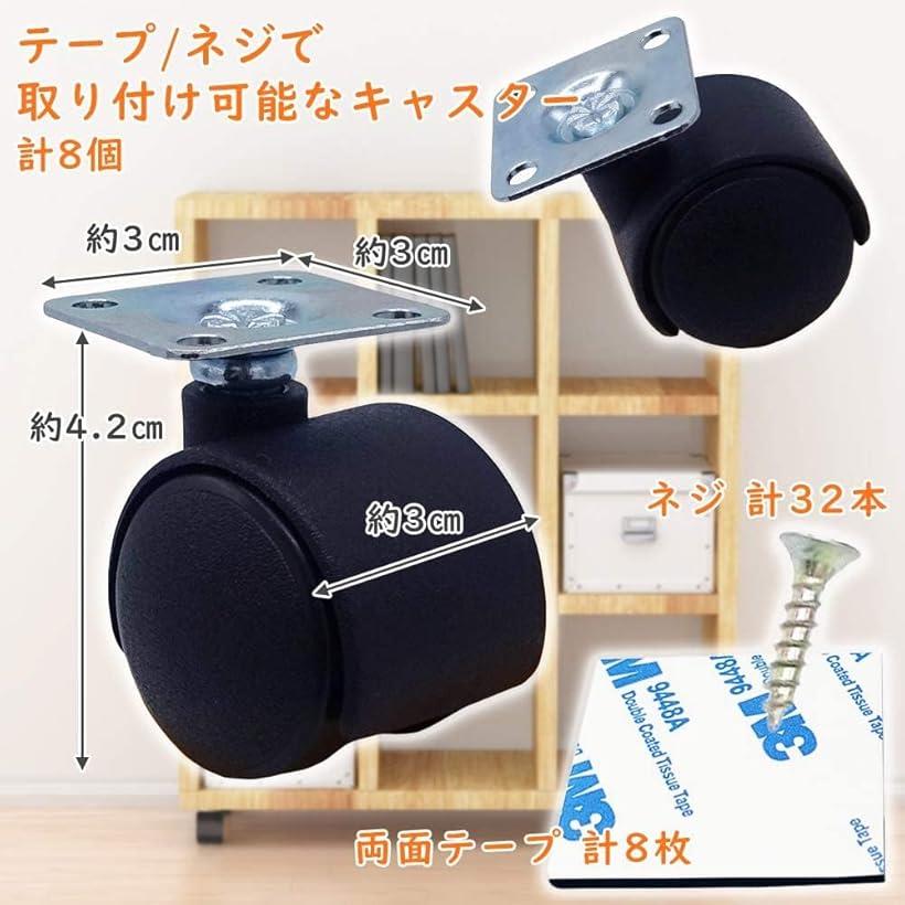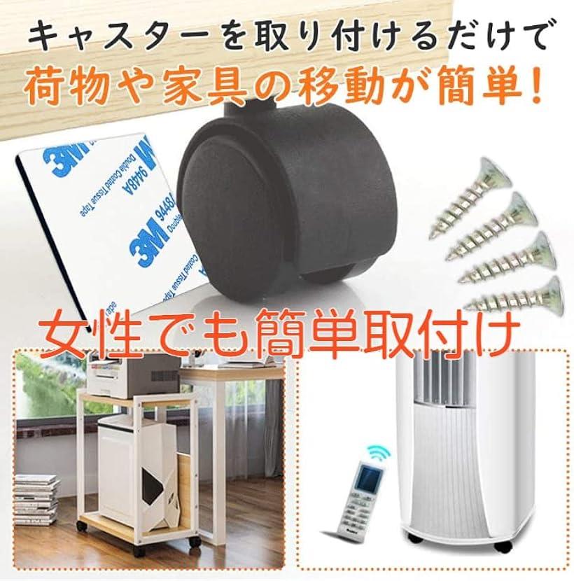 かんたん貼るだけ キャスター 簡単 後付け 強力 両面テープ ネジ付き 耐荷重量 20kg ブラック 粘着テープ式 キャスターのみ 後付け用 小 4個セット