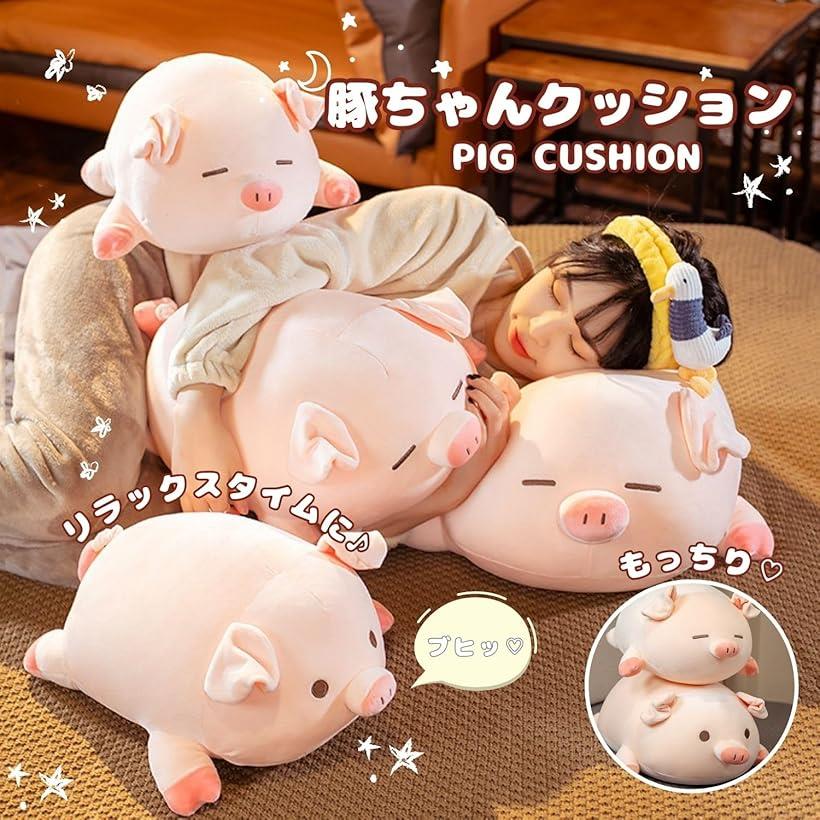 ブタ クッション 豚 抱き枕 ぬいぐるみ 大きい 特大 ふわふわ もちもち 添い寝枕 動物 昼寝枕 40cm ぱっちり目 (ピンク, 40cm)