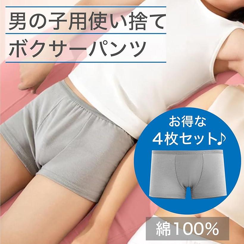 【楽天ランキング1位入賞】男の子 使い捨て ボクサーパンツ 綿 100% 4枚セット キッズ ブリーフ ジュニア 使い捨てパンツ(グレー, M)