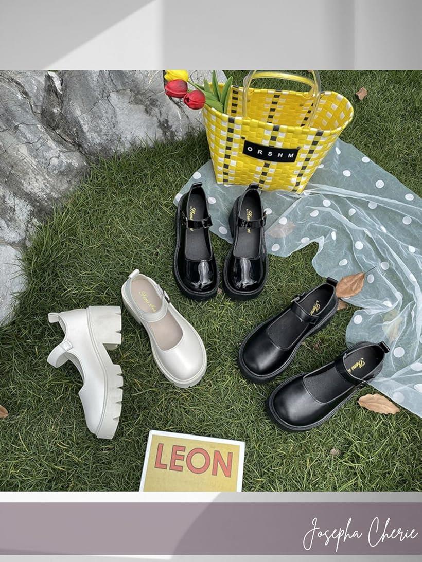 ジョセファシエール 厚底ローファー シューズ メリージェーン パンプス レディース 韓国 オシャレ 可愛い カワイイ ファッション ヒール サンダル 夏 秋 冬 ロリータ 女性 ゴスロリ ギャル 地雷 (グラスホワイト, 22.5 cm)