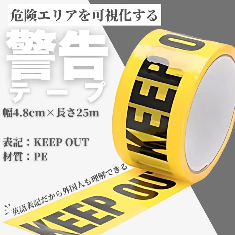 警告テープ 立入禁止テープ 幅4.8cmx長さ25m 安全表示 弱粘着 防水 高耐久 (イエロー, KEEP OUT)