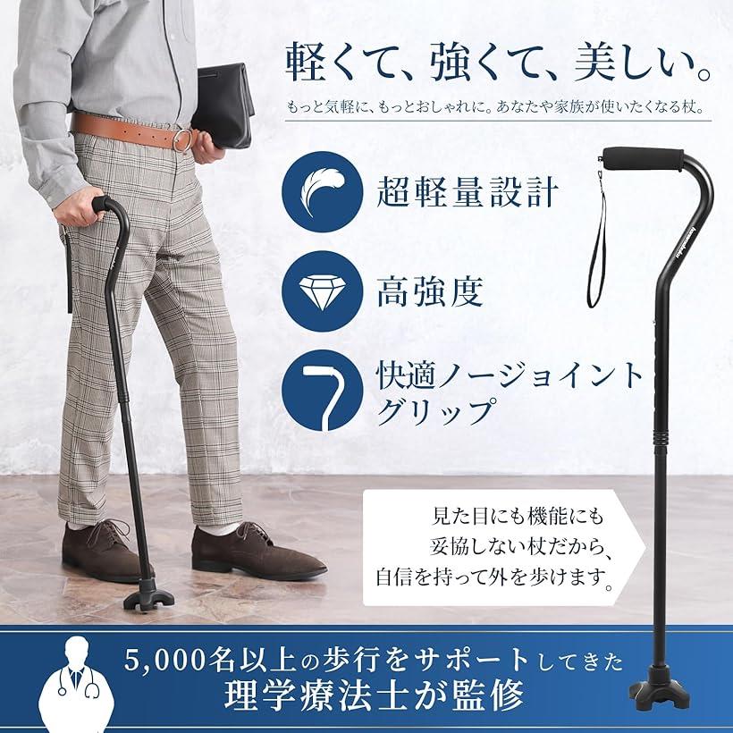 バリエーションコード : 2bujygv1dw商品コード2bujy3lvip商品名Rich Stick 理学療法士 企画監修 男性用おしゃれ杖 折りたたみ杖 ステッキ 杖 4本足 介護杖 つえ 男性用ブランドはなめぶくカラーブラウン「300gの軽量折りたたみ杖」りんごより軽く、毎日の外出が快適な男性用つえ「高強度フレーム設計」接合部は1か所のみ、耐久性と安定感に優れた介護杖「理学療法士監修」5,000名以上の歩行を支援した専門家が企画した信頼の杖「握りやすい一体型グリップ」ノージョイント構造で長時間の使用でも疲れにくい「選べる先端ゴム」4点杖と単脚ゴムの2タイプで歩行スタイルに合わせて選択可能「折り畳み式で持ち運び便利」バッグにも収まり旅行や外出時に最適なステッキ「贈り物にも最適」おしゃれで実用的、敬老の日や誕生日のプレゼントにおすすめ「適用身長:155~185cm」身長に合わせて調整可能な折りたたみ杖※ 他ネットショップでも併売しているため、ご注文後に在庫切れとなる場合があります。予めご了承ください。※ 品薄または希少等の理由により、参考価格よりも高い価格で販売されている場合があります。ご注文の際には必ず販売価格をご確認ください。※ 沖縄県、離島または一部地域の場合、別途送料の負担をお願いする場合があります。予めご了承ください。※ お使いのモニタにより写真の色が実際の商品の色と異なる場合や、イメージに差異が生じることがあります。予めご了承ください。※ 商品の詳細(カラー・数量・サイズ 等)については、ページ内の商品説明をご確認のうえ、ご注文ください。※ モバイル版・スマホ版ページでは、お使いの端末によっては一部の情報が表示されないことがあります。すべての記載情報をご確認するには、PC版ページをご覧ください。* 理学療法士が監修した「Rich Stick」は、スタイルと機能性を兼ね備えた「男性用折りたたみ杖」です。毎日の散歩や通院、旅行まで幅広く活躍するよう設計された本製品は、300gの軽量設計で、長時間の使用でも手や肩に負担がかかりにくくなっています。* 接合部はわずか一か所のみの高強度構造。シンプルで壊れにくい設計により、安心して長くお使いいただけます。耐荷重試験済みで、介護用にもウォーキングポール代わりにもお使いいただける安心感があります。* グリップ部分にはノージョイント設計を採用し、段差のない握り心地を実現。滑りにくく、手のひら全体で支える感覚で、疲労も軽減。特におしゃれでアクティブなシニア男性に好まれている一本です。* 先端ゴムは、安定感を重視した4点杖タイプと、持ち運びやすい単脚タイプの2種類から選択可能。用途や体力に合わせてカスタマイズできます。使わないときはコンパクトに折り畳み、バッグに収納できるため外出先でも邪魔になりません。* 信頼できる一本の杖をお求めの方にこそおすすめしたい商品です。ギフトにも好評で、敬老の日、誕生日、退院祝いなどの贈り物としても選ばれています。