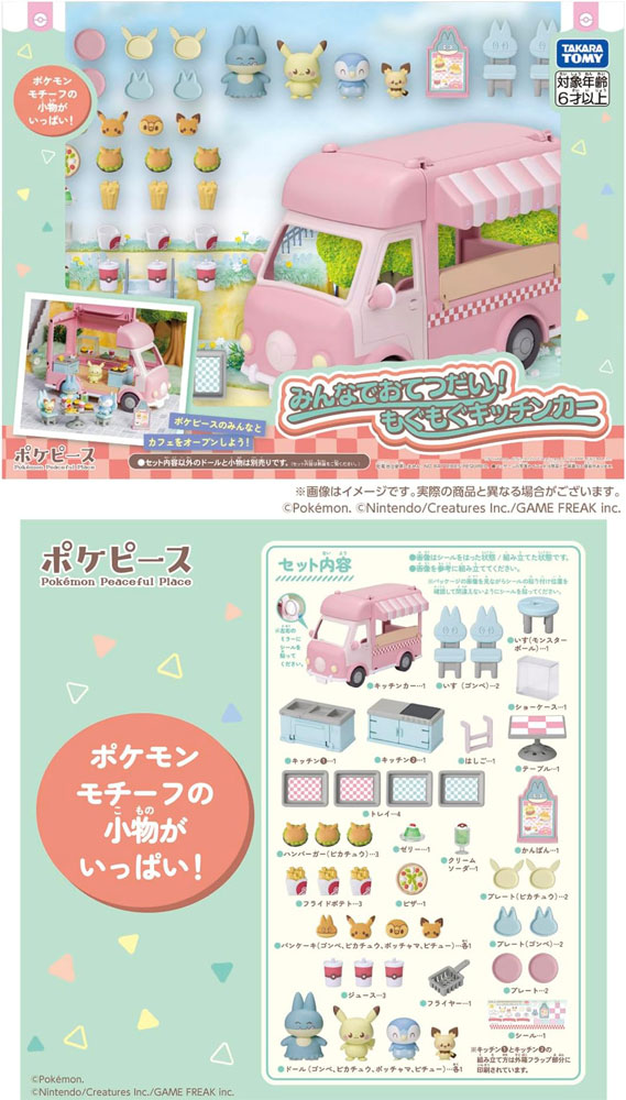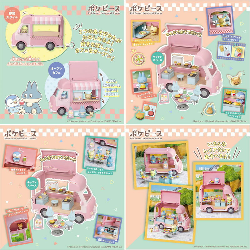 ポケットモンスター ポケモン ポケピース みんなでおてつだい!もぐもぐキッチンカー 【フィギュア 人形 模型 本体 おままごと 玩具 グッズ プレゼント】ポケピースのみんなとカフェをオープンしよう!みんなでおてつだい!もぐもぐキッチンカー♪移動スタイル・オープンカフェスタイルの2つのあそびかたがたのしめるよ!移動スタイル…手でころころ動かしてキッチンカーしゅっぱーつ!オープンカフェスタイル…やねとカウンターをひらいておみせをひらこう♪ゴンべ、ピカチュウ、ポッチャマ、ピチューのドール付き小物は20種類以上!ポケモンモチーフの小物がいっぱいだからすぐにあそべるよ!別売りのコレクションハウスシリーズと合わせてあそべるよ!■対象年齢:3歳以上【フィギュア 人形 模型 本体 おままごと 玩具 グッズ プレゼント】■メーカー:タカラトミー(TAKARATOMY)本商品は、通常1〜2営業日以内に発送(営業日6時までのご注文分)お支払い方法・送料についてポケットモンスター ポケモン ポケピース みんなでおてつだい!もぐもぐキッチンカー 【フィギュア 人形 模型 本体 おままごと 玩具 グッズ プレゼント】