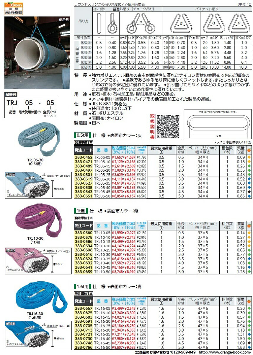 玉掛け ナイロンスリング スリングベルト TRJ10-20 ベルト幅37mm トラスコ TRUSCO ベルトスリング ラウンドスリング(JIS規格品・エンドレス形) (2.0M) 1T用