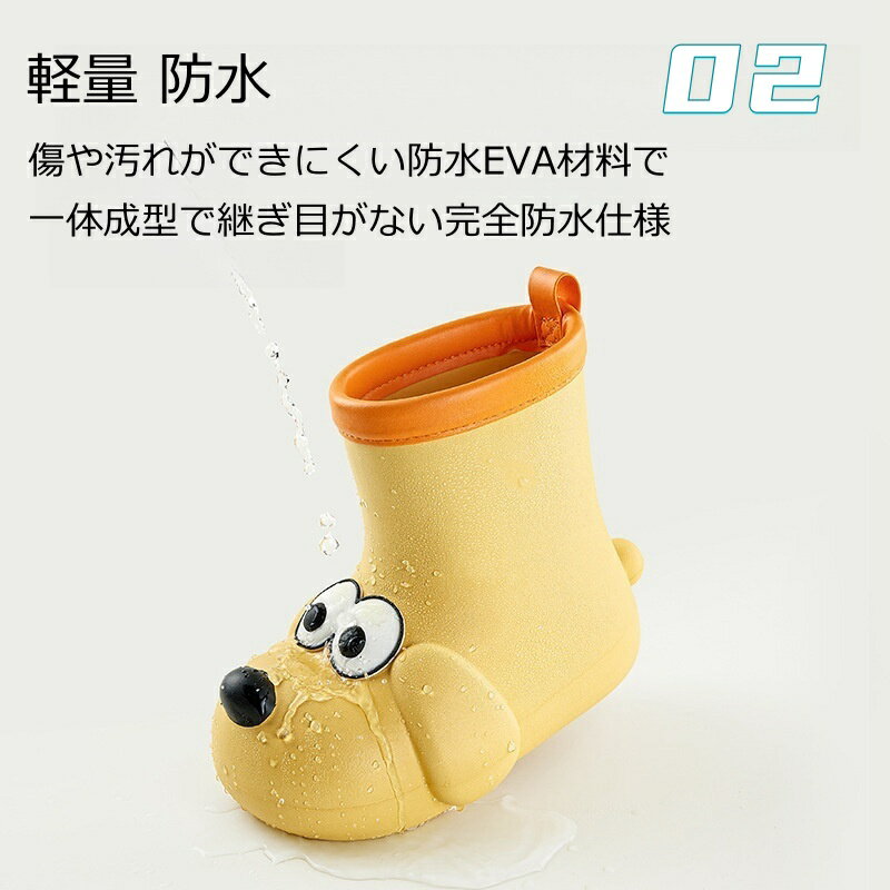 商品名雨の日も笑顔で通園、通学できるオススメキッズレインシューズ!特徴【U字型の爪先】ぷっくりと立体的な犬プリントが可愛い。 シューズの爪先の広い空間は足の指の動きをスムーズにできるようにし、成長発育と認知発達によい。 【柔軟性材料】やわらかな素材で足あたりが良く屈曲しやすいので、お子様も元気に走りまわれます。豊富なサイズ展開なので姉妹でお揃いにしても、雨の日のお出かけが楽しくなりそう! 【滑り止め】 デコボコで目の細かい形状になっており滑り止め効果があります。暗い雨の日でも歩く転びにくくママも心配ないです。雨の日にお出かけ、通学などにお使え、子供のプレゼントとしてお勧める一足ですよ! 【中敷き付き】取り外れ可能なインソールつき、洗いがカンタンに。雨の日を楽しい気分に変えてくれます。雨の日の水まりジャンプの足を快適でドライにキープ。 【軽量 防水】レインブーツは重いゴムの代わりに軽量で柔らかい防水EVA材料で作られます。子供友ちが雨の日に走っ友りスキップしをり、水友まりに飛び込んだりすることができ、服や足を汚してしまう束縛から解放されます。注意事項■寸法は平置きにて計測し、誤差がある場合がございます。 ■商品の撮影には最大限注意を払っておりますが、閲覧時のモニター環境によりましては実際の商品と若干違うお色味に映ることもございます。関連キーワードキッズ レインブーツ スノーブーツ キッズ ジュニア 長靴 15cm 16cm 17cm 18cm 19cm 20cm 北欧カラー 女の子 男の子 レインシューズ 雨靴 長靴キッズ 通園 通学 新学期 レインコート 子供 女の子 レインコート 雨具 滑り止め 滑りにくい レイングッズ カワイイ 可愛い かわいい きれいめ 小学生 低学年 幼稚園 誕生日 プレゼント 新学期 対応 子供用 通学 レインコート 子供 対応 子供用 通学 100 110 120 130 レインコート 雨具 雨対策 ながくつ 長靴子供 キッズ 子供 キッズレインコート 雨対策 梅雨 梅雨対策 レイングッズ関連商品はこちら【2点500円OFF★SALE限定】 レインシュー...レインブーツ キッズ 雨靴 子供 軽量 滑...15~24cm レインブーツ 子供 雨靴 ブーツ...