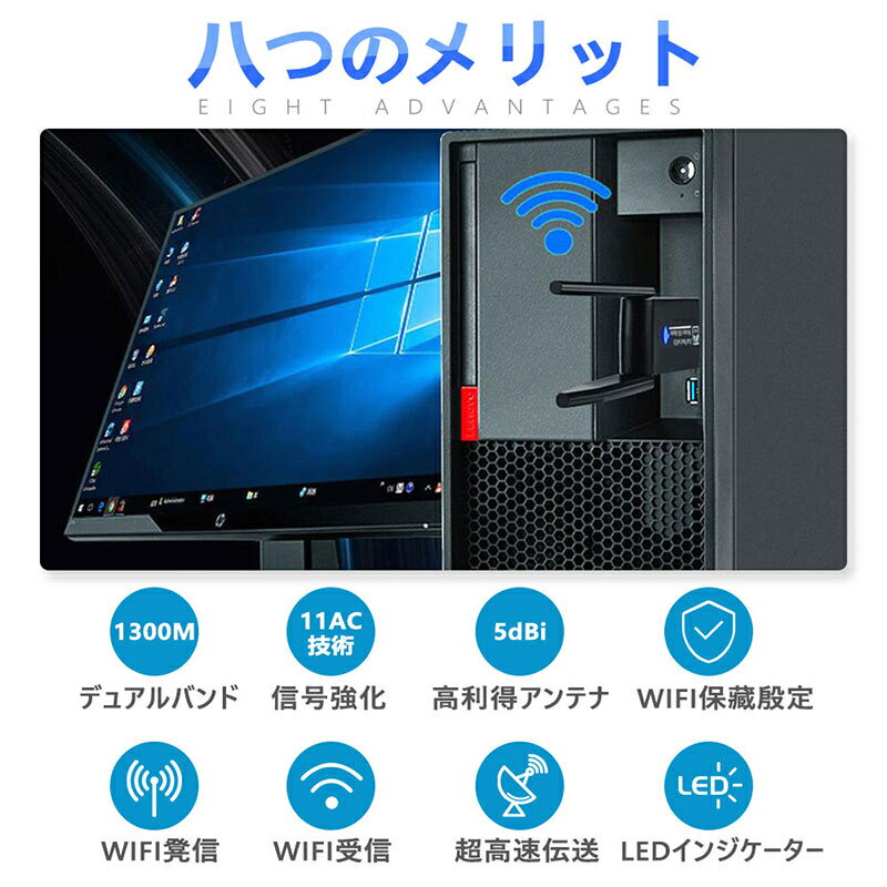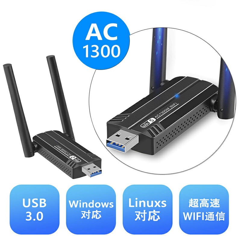 WiFi 無線LAN 子機 1300Mbps USB アダプタ 高速 回転アンテナ 小型 ワイヤレス Windows11/10/8/7/XP/Vista/Mac対応 ドライバーフリー デュアルバンド USB3.0 外付け LANアダプター インターネット ドライバ不要