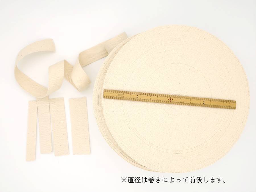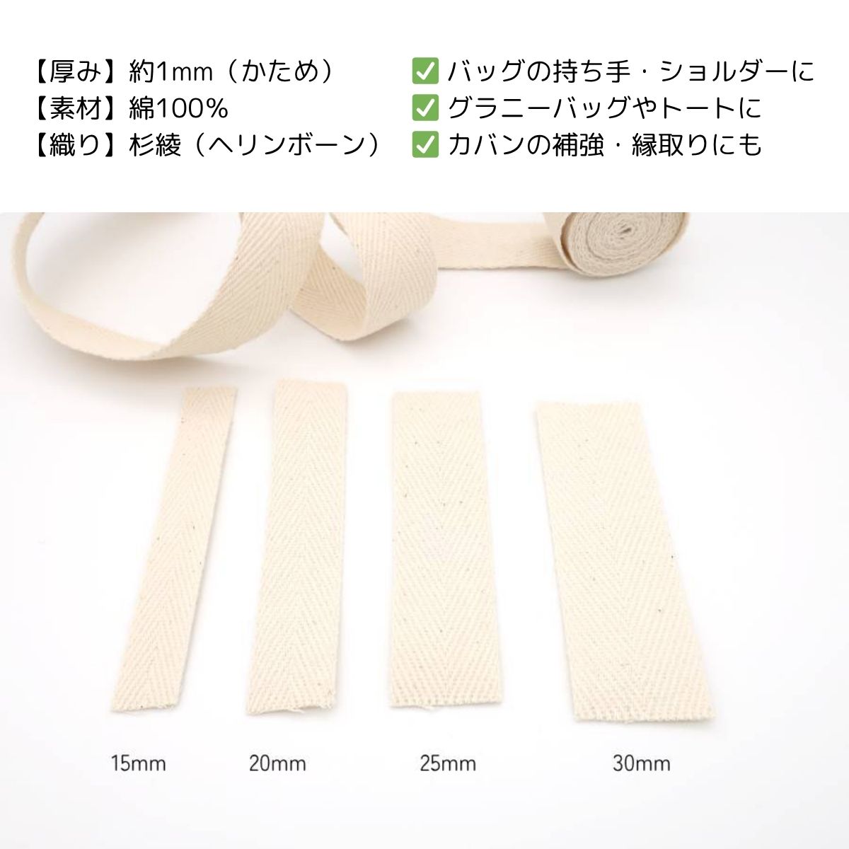 「1mm厚・硬め」綿 杉綾テープ キナリ「15〜30mm幅」「1m単位/50m巻」日本製・綿100%|ヘリンボーン織り 綾テープ かばんテープ 手芸材料(個数により取り寄せ)
