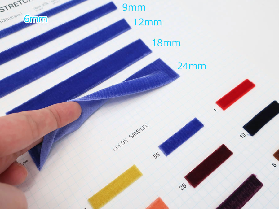 MOKUBA ストレッチ 片面 ベルベットリボン [品番 4653][6-24mm幅] [5mK巻/10m巻] (お取り寄せ)