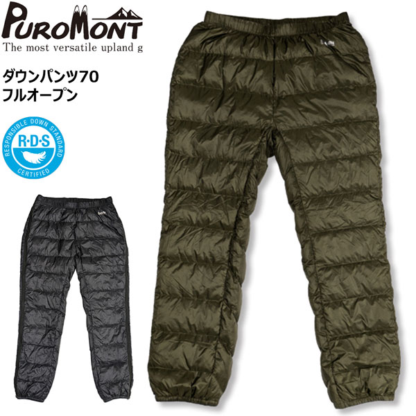 プロモンテ PUROMONTE ダウンパンツ70 フルオープン ブラック オリーブ 防寒 羽毛 ダウン