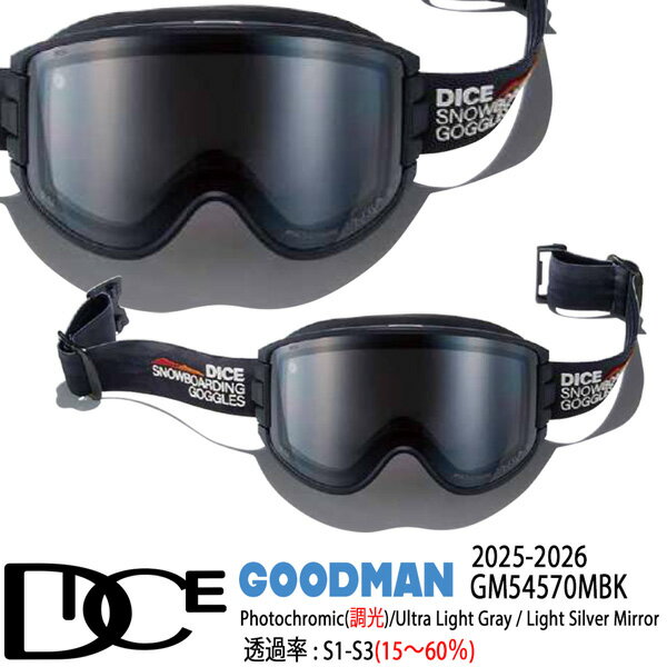 25-26 ダイス グッドマン MBK 調光×ULTRAライトグレイ/ライトシルバーミラー DICE GOODMAN スキー スノーボード ゴーグル 25-26-GG-DIC