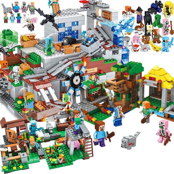 【プレゼントバッグおまけ】国内在庫 ブロック マイクラ レゴ互換 風車ガーデン マイクラレゴ互換 エンダードラゴン レゴテーブル 村 1800+ピース LEGO互換 ミニフィグ 山の洞窟 おもちゃ 誕生日 プレゼント クリスマス 入園 子ども