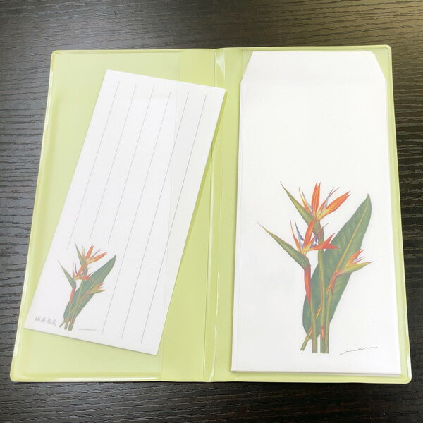 一筆箋15枚 封筒5枚 緑フォルダー 西本眞理子「極楽鳥花」レターセット ボタニカルアート 植物画家 花柄 手紙 母の日 マザーズデイ(SP205)