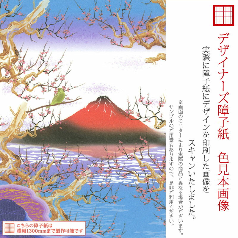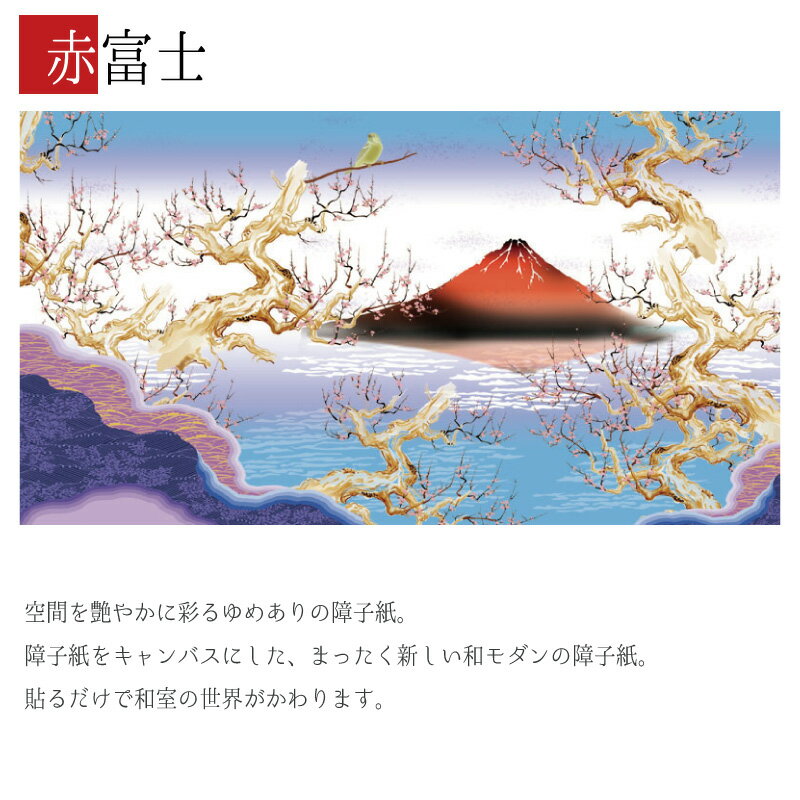 障子紙 おしゃれ モダン 和モダン 破れにくい 強い 強化 丈夫 サイズ オーダー 和 和柄 和風 カラー 和室 窓 障子 貼替え 張替え デザイン 日本画 色 柄 富士 鶯 梅 [ 赤富士 ]