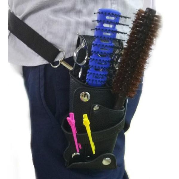 シザーケース 5丁用 ベルト付き 美容師 理容師 専用 トリマー プロ用 /ハサミケース シザーバッグ シザーベルト シザー セニング 5丁 用 バッグ 軽い レザー (ブラック)