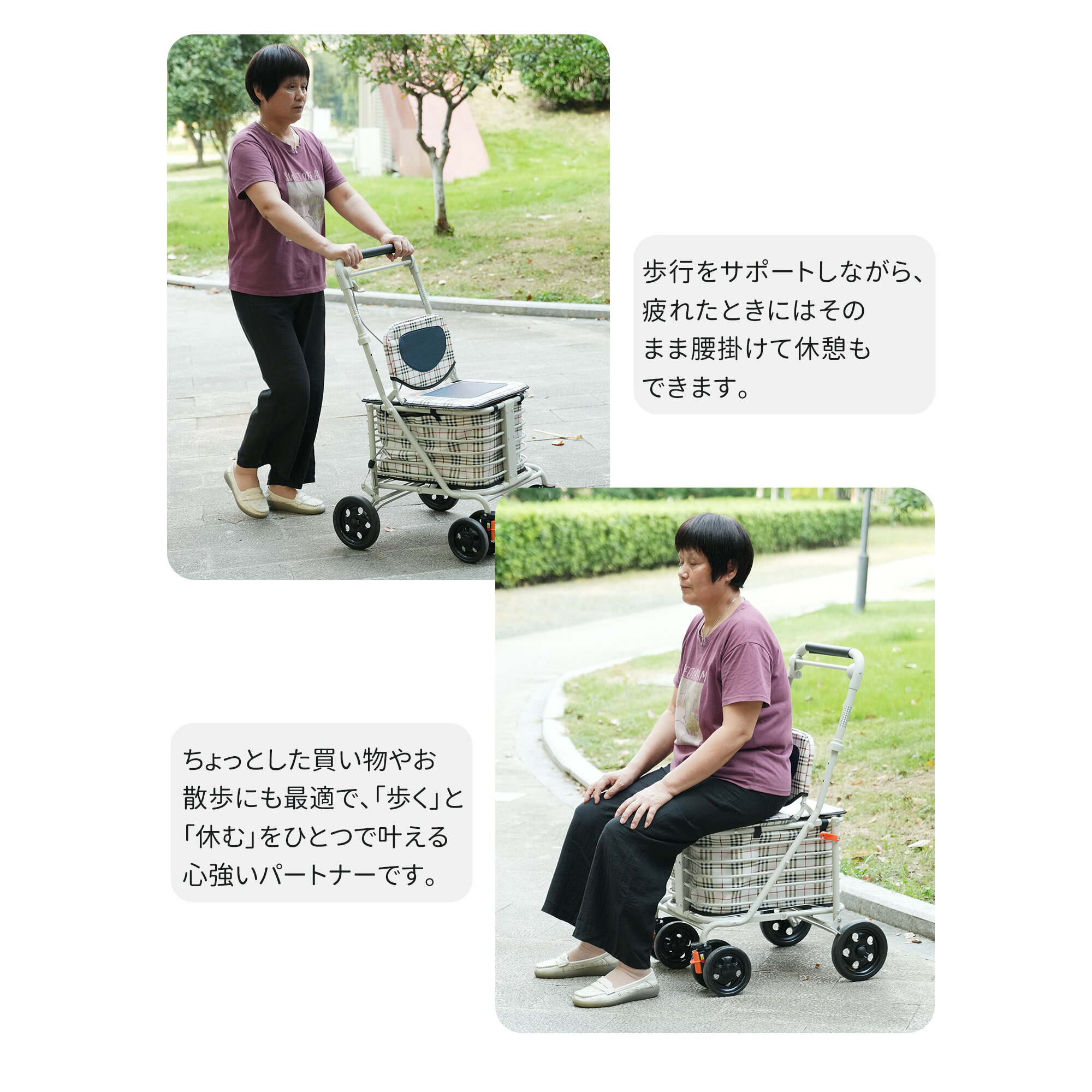 限定50枚★5%クーポン!【新作特別価格中】シルバーカー シニアカー ショッピングカー 買い物 カート 人気 座る 高齢者 お年寄り 年配 介護用品 おしゃれ 手押し車 買い物カート シニア ワイヤーカート 座れる 折りたたみ 折り畳み キャリーカート 歩行補助 椅子付き