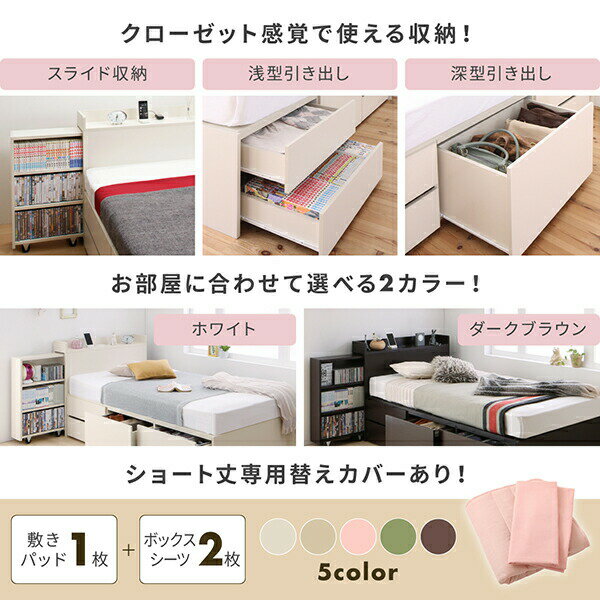 ベッド ベット 収納付きベッド セミシングル 宮付き 大容量 一人暮らし おしゃれ コンパクト 子供 女性 180 キッズ ベビー 日本製 組立設置付 薄型プレミアムポケットコイルマットレス付 セミシングル ショート丈