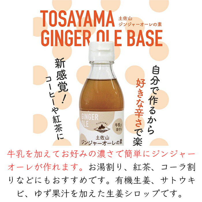 土佐山ジンジャーオーレの素 希釈率5倍 200ml/本《メーカー直送》【送料無料 北海道沖縄離島除く】( 有機JAS認定 オーガニック生姜 使用 ) 生姜シロップ ジンジャーシロップ 土佐山 ジンジャーエール ジンジャエール 素 国産 高知 高知県 希釈 ドリンク