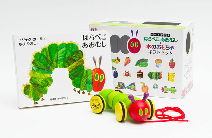 大人気のはらぺこあおむしのグッズをセットにしました! 【セット内容】 ・はらぺこあおむし+木のおもちゃギフトセット ISBN:9784032371147 ・はらぺこあおむし ハンドタオル(レモン) JAN:4541545041296 ・はらぺこあおむし ハンドタオル(いちご) JAN:4541545041302 ・はらぺこあおむし こども食器 ギフトセット JAN:4964412807403 【商品について】 ----------------------------------------------------------------- ■はらぺこあおむし+木のおもちゃギフトセット エリック・カールの人気絵本『はらぺこあおむし』のボードブック版と、「はらぺこあおむし木のおもちゃ」がセットになりました! 「ボードブック」 小さなあおむしが美しい蝶に成長するまでを描いた、人気絵本のボードブック版。幼い読者にページがめくりやすい頑丈な造本です。 サイズ(判型):13cm×18cm 「はらぺこあおむし木のおもちゃ」 ひもをひっぱると、タイヤつきのあおむしがコロコロ動いて楽しい! ゴムの木の廃材をつかった、環境にやさしいおもちゃです。贈り物にもぴったり。 素 材:ゴムの木 サイズ:14cm×19cm×11cm ----------------------------------------------------------------- ■はらぺこあおむし ハンドタオル(レモン) ■はらぺこあおむし ハンドタオル(いちご) フルーツとはらぺこあおむしのワンポイントが可愛い!使い勝手のいいハンドタオルです! 素 材:綿100% サイズ:縦35.3×横34.5cm ----------------------------------------------------------------- ■はらぺこあおむし こども食器 ギフトセット セット内容:こども茶碗・こどもマグ・フルーツ皿・ラーメン丼・レンゲ ×各1個 ボックス付き サイズ:こども茶碗 /径10.5×高さ4.5cm こどもマグ /径7.5×高さ6cm フルーツ皿 /径15×高さ4cm ラーメン丼 /径14.5×高さ6cm レンゲ /長さ 14cm 箱サイズ /幅30.5×奥行16.5×8.5cm 素材・材質:磁器 生産国:日本 家庭用電子レンジ:使用可 (温める程度) 家庭用食洗機:使用可 ※陶磁器製品は割れ物です。取扱いにご注意ください。 -----------------------------------------------------------------