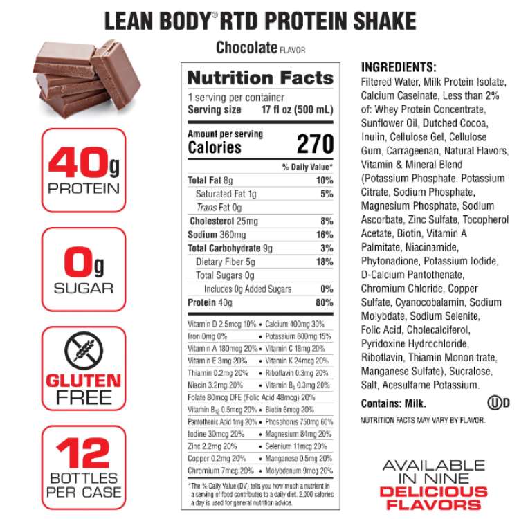 【最大1040円OFFクーポン有】リーンボディ プロテインシェイク チョコレート 500ml 12パック Labrada Lean Body 17oz Chocolate (12 tetra) プロテインドリンク 日本未発売 大容量 【お取り寄せ商品】