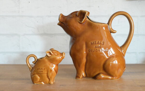 【2025.3】ブタさんピッチャーSサイズ 人気のスタジオMのブタさんモチーフのおしゃれな ミルクピッチャー。 約90ccの容量ですので コーヒーのミルクポットや、トーストに掛ける ハチミツ入れとして。 ビンテージ感の漂うブタさんは使わない時も キッチンのおしゃれなインテリアに。 縁起物のブタさんはプレゼントにもおすすめです。 *食洗機、電子レンジ対応 豚はヨーロッパやアジアなど、世界中で幸運のシンボルとして愛されています。 ヴィンテージのコレクターアイテムの中でも人気のあるモチーフです。 今にも語りかけてきそうな口元、鋭い瞳は見た人の心を惹きつけます。 胴体のメッセージも素敵な食卓になるように願いを込めて添えられています。 丸い尻尾がキュート。 手のひらサイズの小ぶりな豚さん。 持ち手が小さいので落下にご注意ください。 フラワーベースとして使うのもお勧めです。 約900ccの大容量のLサイズ(写真右)もございます→こちら