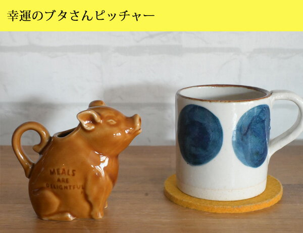 スタジオエム『ブタさんピッチャーS 90cc』ミルクピッチャー ミルクポット クリーマー ミニ 小さい 陶器 ブーちゃんピッチャー 豚 ぶた おしゃれ かわいい スタジオM studiom 日本製 電子レンジ 食洗機対応 アンティーク調 レトロ ビンテージ風 コーヒー ミルク 蜂蜜 注ぐ