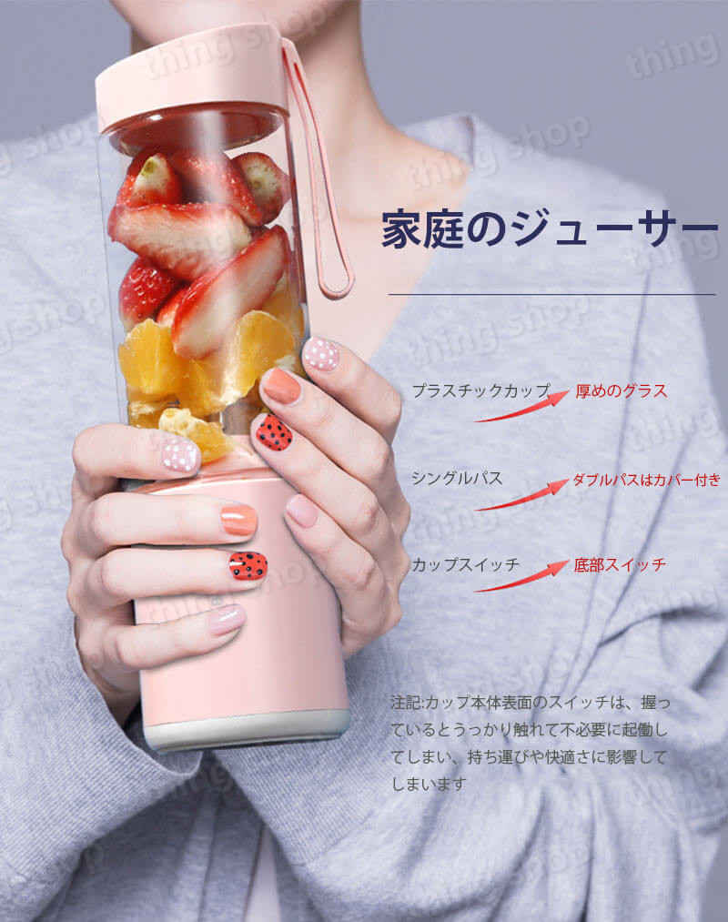 商品仕樣商品名称:ボディージュースカップカラー:ピンク(欠品)  ホワイト制品型番:530B充電時間:3.5時間刃材質:304ステンレス材質:食品級の高ホウ素グラスモーター回転数:15000r/minぐらい産地:中国
