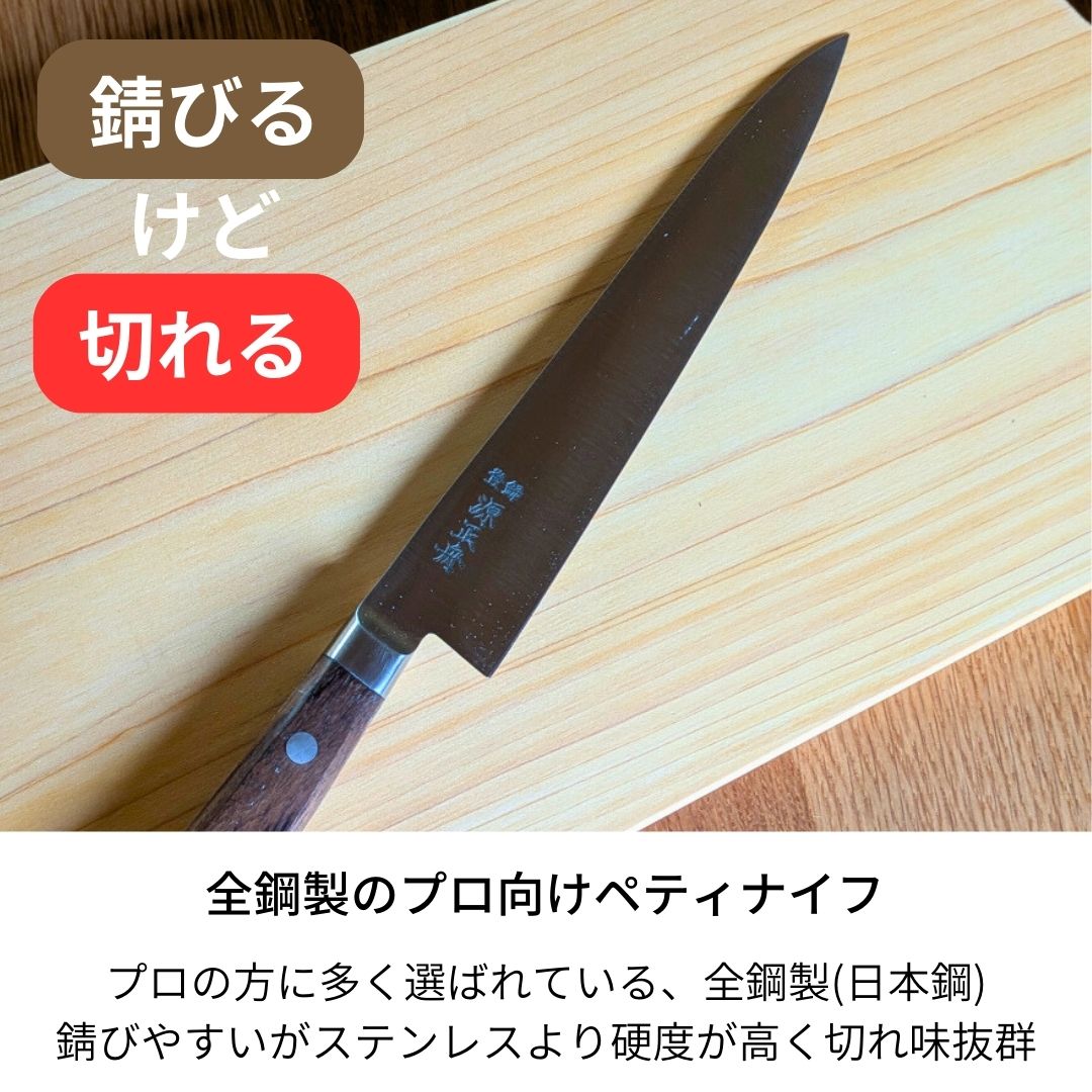 源正舟のペティナイフは、プロの料理人にも選ばれる全鋼製の逸品です。日本製の鋼を使用し、優れた切れ味を誇ります。錆びやすい特性がありますが、その分、ステンレスよりも硬度が高く、切れ味が持続します。小回りが利くため、細かな作業にも最適です。さらに、口金付きの設計により耐久性が向上し、長期間にわたって使用可能です。業務用としても、プレゼントとしても喜ばれる一品です。源正舟のペティナイフは、プロの料理人にも選ばれる全鋼製の逸品です。日本製の鋼を使用し、優れた切れ味を誇ります。錆びやすい特性がありますが、その分、ステンレスよりも硬度が高く、切れ味が持続します。小回りが利くため、細かな作業にも最適です。さらに、口金付きの設計により耐久性が向上し、長期間にわたって使用可能です。業務用としても、プレゼントとしても喜ばれる一品です。