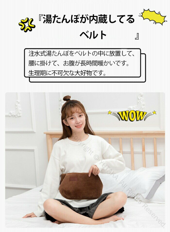 商品情報検索キーワード:湯たんぽ 注水式 ゆたんぽ エコ湯タンポ お湯いれ 柔らかい かわいいカバー付き あったか 足 防寒 冷え対策 生理期 大容量 暖かい 洗える ふわふわ 安全 防寒対策 誕生日 クリスマス プレゼント ギフト 贈り物 抱き枕 冬用 防寒グッズ 省エネ 温もり 携帯便利 軽量 なめらか おしゃれ ふわふわ オフィス 冷え対策 敬老の日 ギフト商品名:注水式湯たんぽ素材:PVC、ポリエステルPVC湯たんぽサイズ:27*16cm容量:1000mlセット内容:ベルト+保護カバー+PVC湯たんぽ生産国:中国(日本人スタッフによる安心の検品体制)おすすめポイント★湯たんぽが内蔵してるベルト注水式湯たんぽをベルトの中に放置して、腰に掛けて、お腹が長時間暖かいです。生理期に不可欠な大好物です。★多部位使用可能お腹だけでなく、膝、足、肩、腰などの多部位でも保温できます。お湯を入れるだけで手軽に使えて、電気不要の注水式湯たんぽです。節電で繰り返し使えて省エネです。★水洗い可能取り外して洗濯することができるのでいつでも清潔を保つ気持ちも良いです。★柔らかい生地柔らかくて細やかな素材を採用して、滑らかで、クセになるように肌触り良いです。購入前のご注意※商品写真はできる限り実物と近づけるようにしておりますが、お使いのモニター設定、お部屋の照明等により実際の商品と色味が異なる場合がございます。※採寸はあくまで目安としてのもので、表記に多少の誤差(前後2〜3cm)が生じる場合があります。※生産時期により、色・サイズ・デザインが多少が異なる場合がございますので、複数の商品をご注文頂いた場合も多少に異なる場合があります。※当店の商品は全て日本人スタッフにより検品してから発送したものです。海外からの輸入商品のため、縫製は日本製のものと比べて、 縫製の見劣、糸のほつれ、製造過程における小さなキズ、シミなどがある場合がございますが、不良品ではございません。予めご了承くださいませ。※各商品は各商品ページ選択肢のところに規定ある納期より発送いたします。当店では複数店舗で在庫を共有しており、システムによる在庫調整を行っております。ご注文が集中した場合、タイミングにより在庫にずれが生じ欠品となる可能性がございます。 その際、当店での注文確認後にご案内させていただく場合がございますこと、予めご了承ください。商品の保証初期不良の場合、未使用の商品のみ到着日から7日以内にご連絡いただければご返金、交換対応させていただきます。ご使用後の返金・交換は保証外となっております。お腹 背中 手 あったか ホットウォーマー 寒さ対策 暖かい 生理期 繰り返し使える かわいい湯たんぽ 敬老の日 ギフト 安全防爆 指定された配送時間は承っておりません。【YUTAKAプラス】