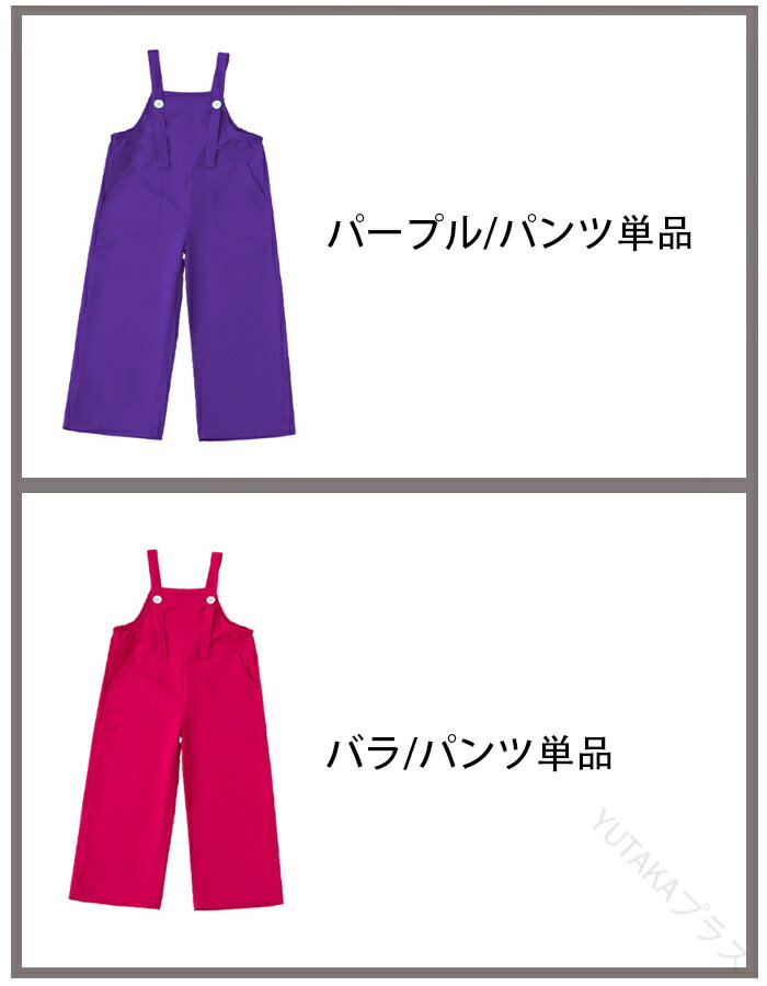 サロペット パンツ オレンジ レッド イエロー ブルー グリーン パープル バラ柄 サロペットパンツ ダンスパンツ 男の子 女の子 オーバーオール 舞台 演出服 団体服 幼稚園 小学校 かわいい 文化祭 学園祭 応援団 クラス活動 ボトムス 長ズボンパンツ