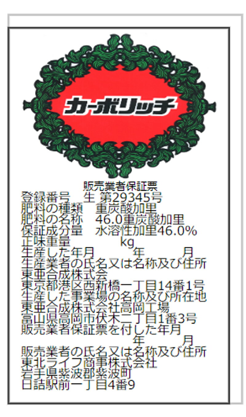 肥料の種類重炭酸加里 肥料の名称 46.0重炭酸加里登録番号生 第29345号保証成分水溶性加里 46.0 正味重量5kg特徴 天然草木灰と同じ成分の粉状のカリ肥料です。さらには分解の過程で当製品1kgにつき約ドラム缶1本分のCO2を発生します。光合成を助け、根にも優しいカリ肥料としてこちらをお選び下さい。粒状が良い場合は同商品の粒をお選びください。 こちらの肥料はK単肥ですので、組み合わせは窒素肥料として蒸製羊毛粉やかつおくん、リン酸肥料として焼成骨粉、マグネシウム肥料として水滑石マグ、微量要素として医王さんをおすすめします。 カタログより抜粋 「カーボリッチにはこんな特長があります。 1:天然草木灰と同じ組成を科学的に合成した、炭酸ガスと加里からなる弱アルカリ性の肥料で、土壌を荒らしません。 2:他の加里に比べ、土壌中のEC濃度上昇率が格段に低く(硫酸加里の1/8、塩化加里の1/10)、土壌障害を起こしません。(EC濃度が上昇すると、作物の生育を妨げます。) 3:水に溶けやすく、土壌への浸透が極めて早く、速効性の肥料です。 4:炭酸ガスをタップリ含んでおり(製品20kg当たり4,474リットル)、炭酸同化作用を促進したり、土壌を膨軟にし、酸素供給を高め、根毛の発育を活発にします。 5:追肥として使用すると、通常では効きにくい土壌中の窒素分を誘発したあと、加里分が吸収されるため、葉色を鮮明にし、新梢の徒長が一時的に止まるなどの効果が現れます。 対象作物 果菜類 なす、きゅうり、トマト、いちご、メロン、すいか、ピーマンなど 根菜類 たまねぎ、ごぼう、にんじん、にんにく、らっきょう、根しょうが、だいこんなど 芋類 さと芋、なが芋、やまと芋、さつま芋、じゃが芋、こんにゃく芋など 豆類 あずき、いんげん、おくら、さやえんどう、落花生、そら豆、スイートコーンなど 葉菜類 ほうれん草、はくさい、キャベツ、ねぎ、にら、セルリー(セロリ)、ふき、カリフラワー、ブロッコリー、水菜、パクチーなど 花卉類 菊、バラ、カーネーション、チューリップ、りんどう、グラジオラス、球根など」 当店お勧めの使用方法 粉品 葉面散布 カーボリッチ粉を500-1000倍で葉面散布(農薬との混用についてはほとんど可能なのですが、酸性のものと混用すると黄変や白濁が生じることがありますので、事前に少量の試験を行ってください) 粒品 ばら撒き追肥として10aあたり3-10kg程度 粉、粒とも溶かして液肥としての追肥も可能です。肥料の種類 重炭酸加里肥料の名称 46.0重炭酸加里登録番号 生 第29345号保証成分 水溶性加里 46.0正味重量 5kg特徴 天然草木灰と同じ成分の粉状のカリ肥料です。さらには分解の過程で当製品1kgにつき約ドラム缶1本分のCO2を発生します。光合成を助け、根にも優しいカリ肥料としてこちらをお選び下さい。粒状が良い場合は カーボリッチ(粒) をお選びください。 これはK単肥ですので、組み合わせは窒素肥料として蒸製羊毛粉やかつおくん、リン酸肥料として焼成骨粉、マグネシウム肥料として水滑石マグ、微量要素として医王さんをおすすめします。