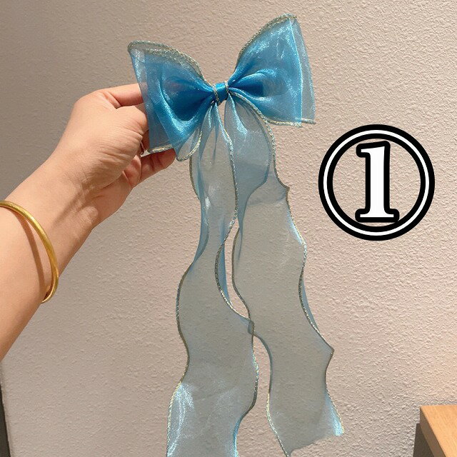 リボンバレッタ アンジュ リボン オーガンジー リボン 大きめ リボンヘアピン ダブルリボン チュール ヘアクリップ 編み込み ロングテール パール付き キッズ 子供 ジュニア ヘアアクセ ヘアアレンジ アレンジ 大きなリボン かわいい yuyumo 三つ編み ヘアアクセサリー