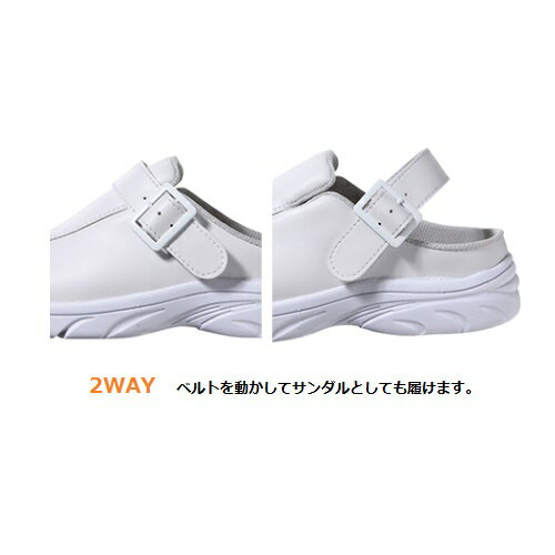 自重堂,ホワイセル,ナースシューズ,ナース靴,ナーススニーカー,ナースサンダル,看護靴,看護シューズ,看護サンダル 【商品説明】 ●滑りにくい靴底でサンダルにもなる2WAYナースシューズ。 ●男女兼用 ●Sサイズ/22〜22.5cm ●Mサイズ/23〜23.5cm ●Lサイズ/24〜24.5cm ●LLサイズ/25〜25.5cm ●3Lサイズ/26〜26.5cm ●4Lサイズ/27〜27.5cm ●5Lサイズ/28cm ●素材/甲皮:合成皮革、底:EVA・合成ゴム ●中敷/カップインソール、抗菌防臭加工 ●ヒール/35mm ●ベルトを動かしてサンダルとしても履けます。 ●靴底のかかとと外側には、滑りにくい耐久性のある素材を使用。