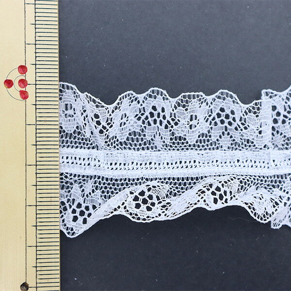 【数量5から】 レース 『ラッセル両山フリル 幅約3.5cm 白 125522』 両方のフリルでかわいい仕上がりになります。 人形の洋服、アームバンド、ヘッドドレス、シュシュ、クッションカバーなどにご使用いただけます。 ドライクリーニングのみ可能で、後染めにつき多少の色ブレがあります。 [手芸 髪飾り 子供服 小物作り ハンドメイド デコレーション 白 しろ シロ ホワイト] ◆幅:幅3.5cm ◆素材:ナイロン100% ◆生産国:日本 ※モニターによって実物のお色と若干異なる場合がございます。 【手芸用品・毛糸・生地の専門店 ユザワヤ】