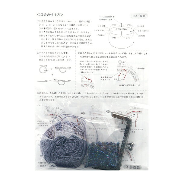ビーズキット 『ビーズクロッシェで作るスクエアがま口 ダークグレー×ブラックメタリック』 【ユザワヤ限定商品】